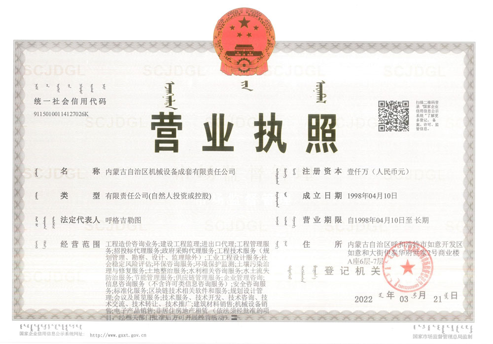 內(nèi)蒙古自治區(qū)機械設(shè)備成套有限責(zé)任公司營業(yè)執(zhí)照