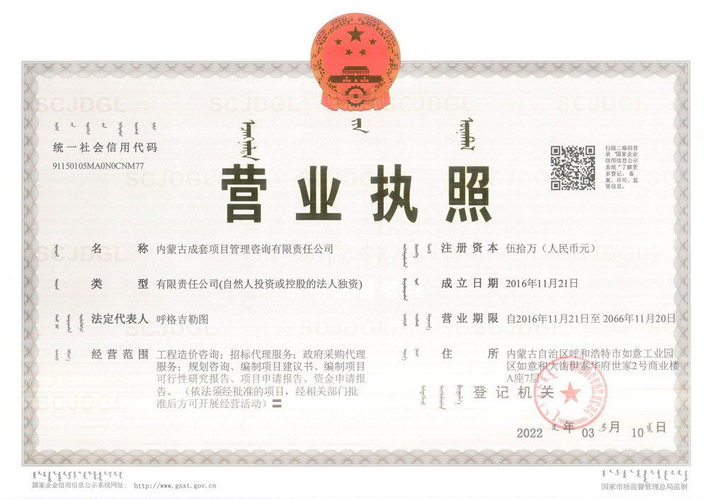 內(nèi)蒙古成套項目管理咨詢有限責(zé)任公司營業(yè)執(zhí)照
